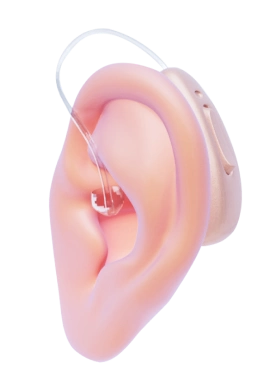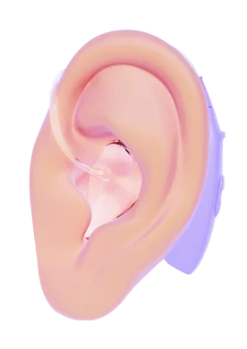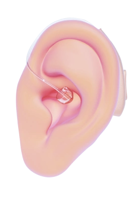 Possuem uma parte que fica atrás da orelha, mas o componente do receptor, que contém o alto-falante, fica dentro do canal auditivo